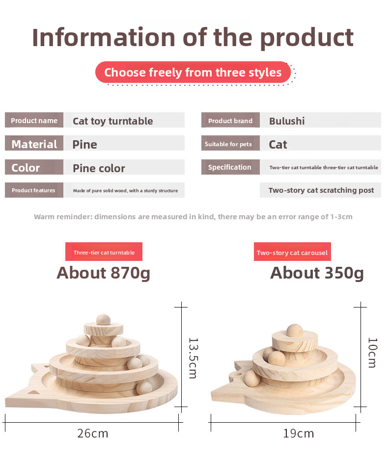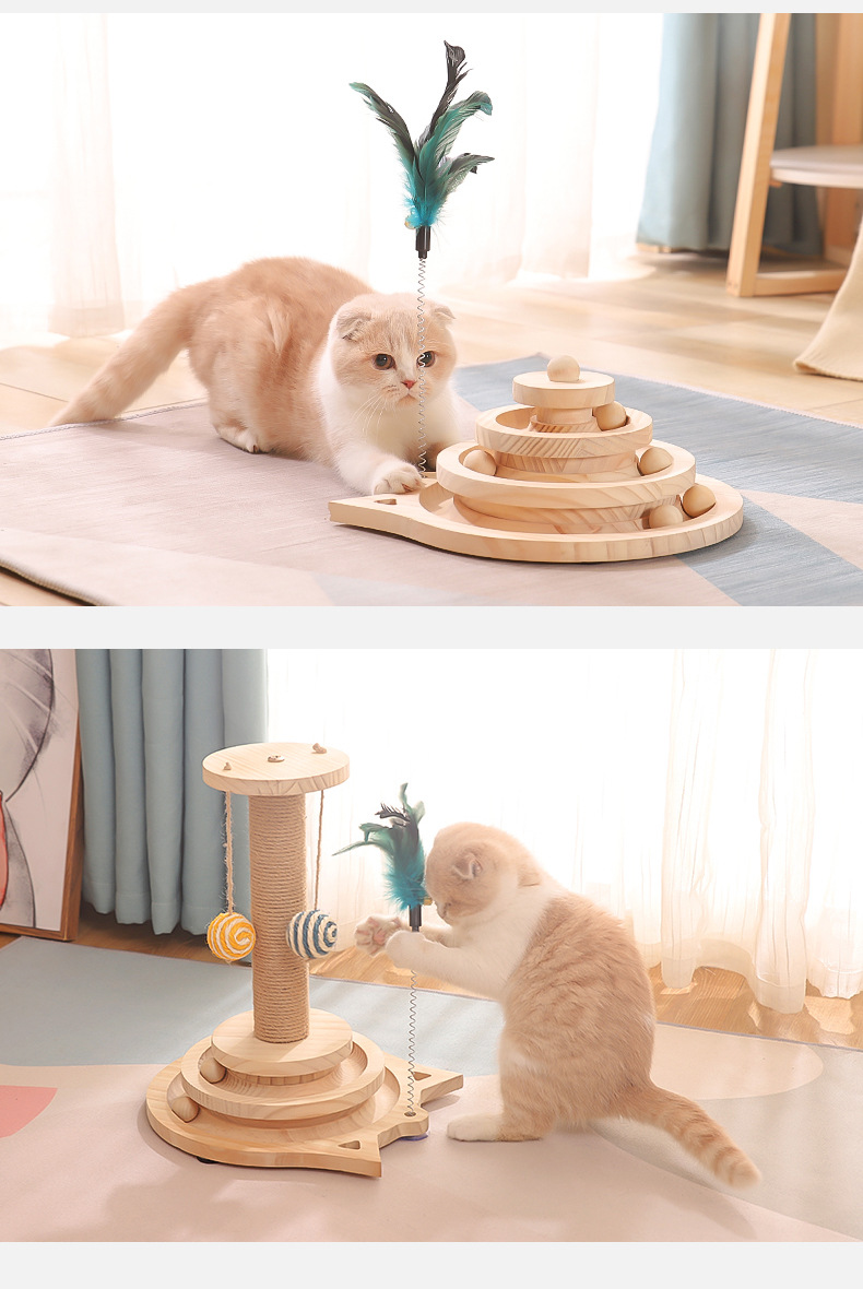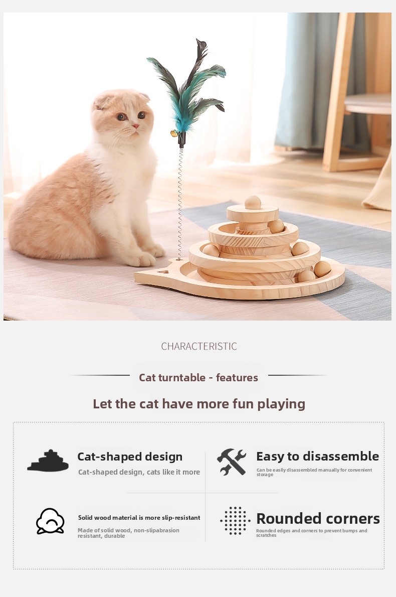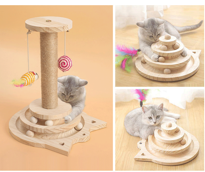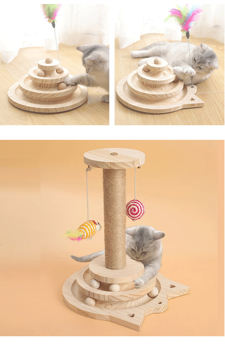 {"styleType":"offer-type-1","items":"866514733588,862254778486,850555873261,848166018093,848157478724,848457405430,848163354286,842794249230,839887223997","usemap":"_sdmap_0"} Overview Solid Wood Material: Durable and eco-friendly construction for long-lasting use. Interactive Design: Features a turntable, cat stick, and ball to keep cats entertained. Multi-Functional: Combines scratching post and playful elements in one toy. Safe for Pets: Non-toxic...