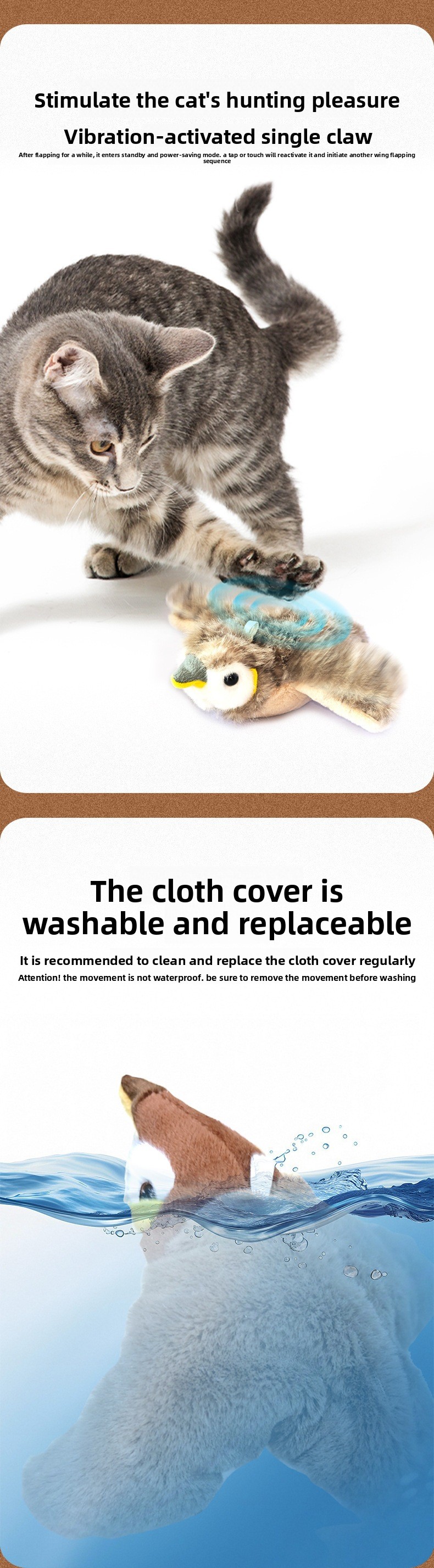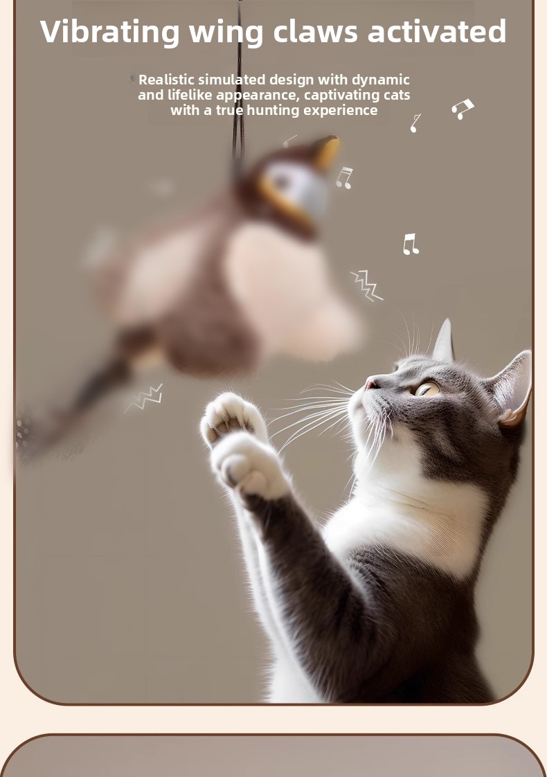 Simulation Design: Realistic bird-shaped toy with lifelike appearance and movements to attract cats.