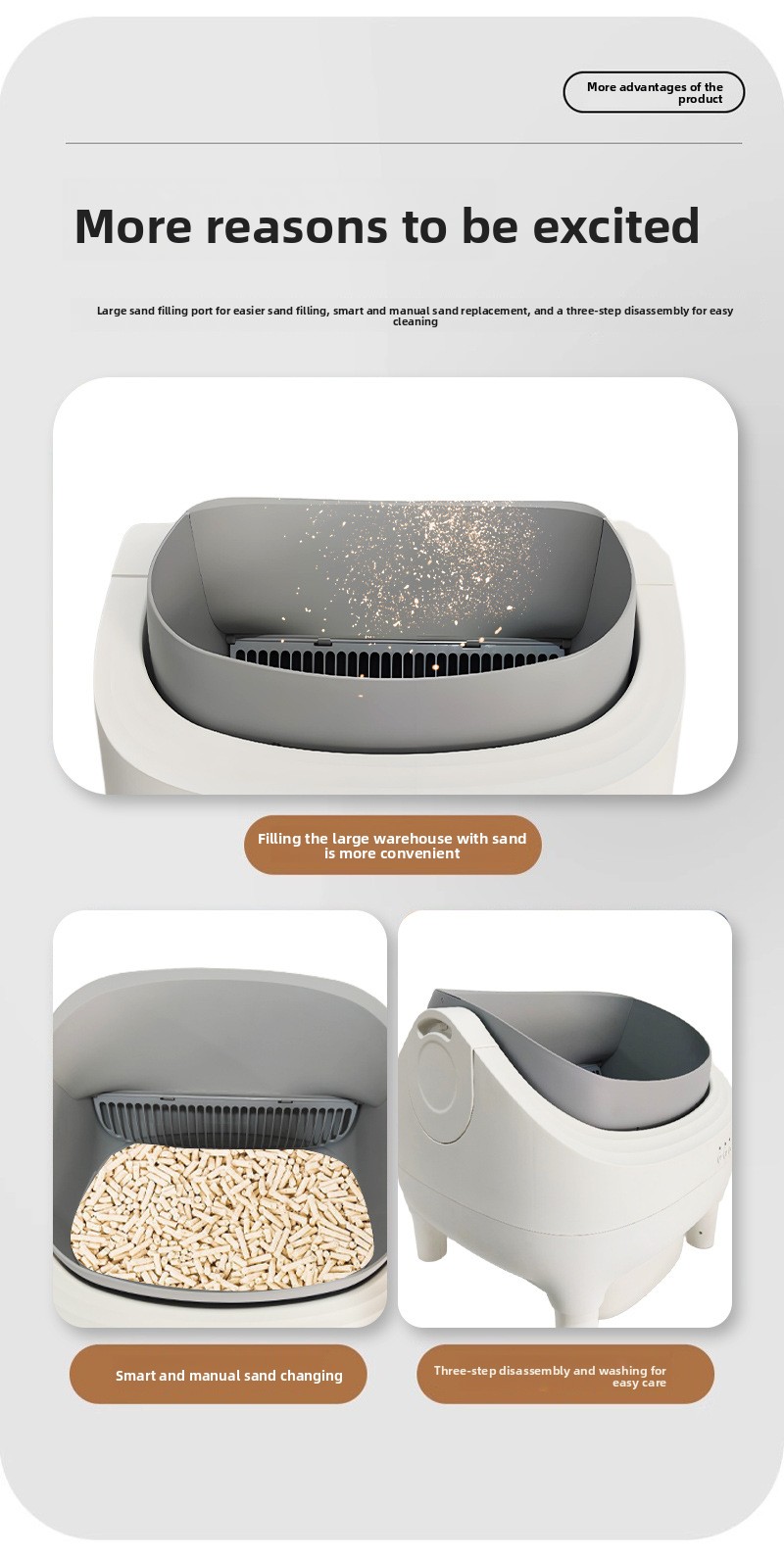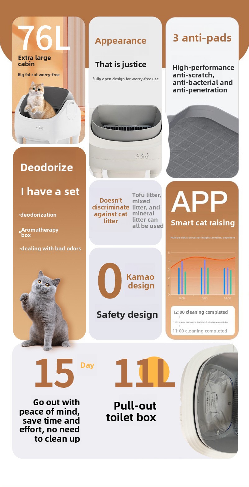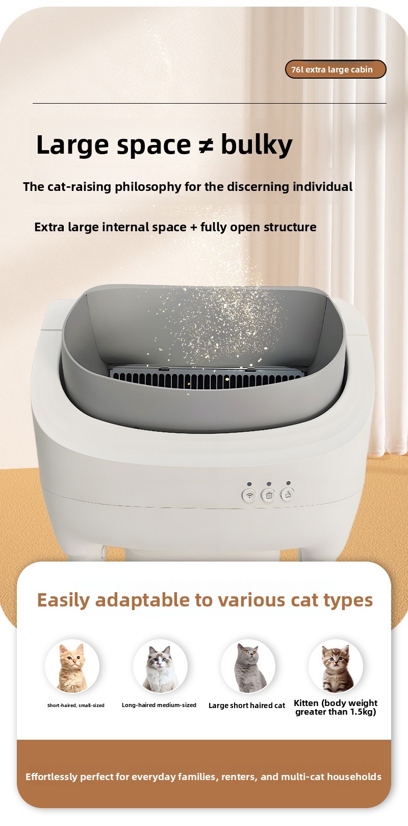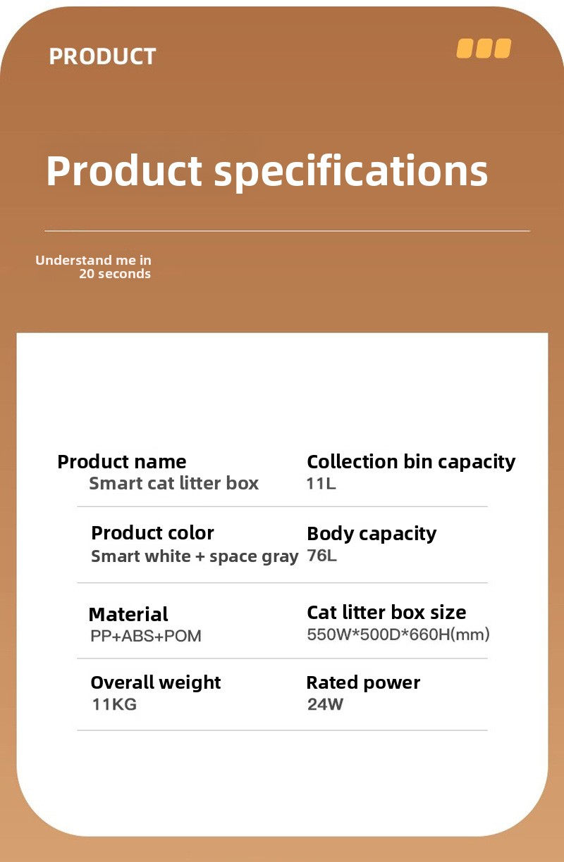 OverviewOpen Design: Allows easy access for cats and simplifies cleaningElectric Scooping: Automates waste removal for hands-free maintenanceLarge Size: Accommodates big cats comfortablySmart Training: Supports intelligent toilet habits developmentABS Material: Durable and easy to clean plastic construction SpecificationsMaterial: ABS plasticColor:...