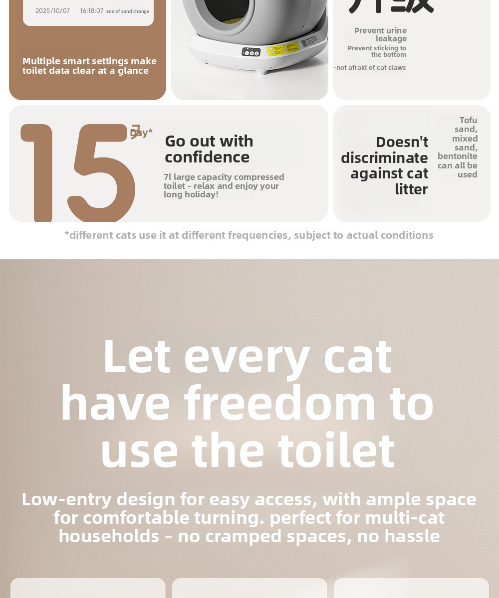 Overview Smart Cleaning: Automatically cleans cat litter, reducing manual effort. Fully Enclosed Design: Prevents litter from being scattered outside the litter box. Wi-Fi Remote Control: Allows monitoring and control via smartphone app. Large Capacity: Spacious interior suitable for cats of...